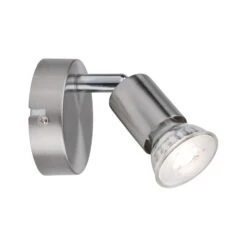 Das einflammige Spotlight der Serie Carolina in Nickel matt eröffnet vielfältige Einsatzmöglichkeiten und fügt sich mit seinem schlichten Design nahtlos in jede Wohnsituation ein. Das Leuchtmittel ist frei wählbar. Es lassen sich beliebige Reflektorlampen mit GU10-Sockel und einer Leistung von max. 10W einsetzen.