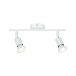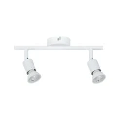 Das zweiflammige Spotlight der Serie Carolina in der Farbe Weiß matt eröffnet vielfältige Einsatzmöglichkeiten und fügt sich mit seinem schlichten Design nahtlos in jede Wohnsituation ein. Das Leuchtmittel ist frei wählbar. Es lassen sich beliebige Reflektorlampen mit GU10-Sockel und einer Leistung von maximal 10 Watt einsetzen.