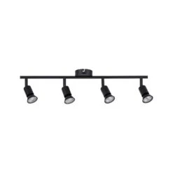 Das vierflammige Spotlight der Serie Carolina in der Farbe Schwarz matt eröffnet vielfältige Einsatzmöglichkeiten und fügt sich mit seinem schlichten Design nahtlos in jede Wohnsituation ein. Das Leuchtmittel ist frei wählbar. Es lassen sich beliebige Reflektorlampen mit GU10-Sockel und einer Leistung von maximal 10 Watt einsetzen.