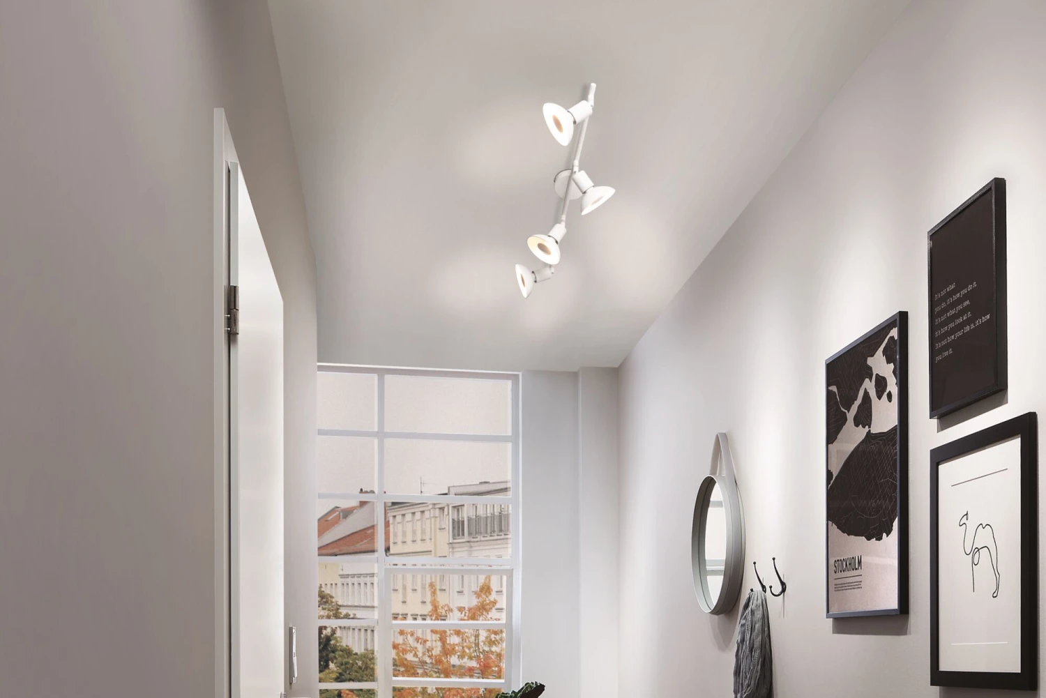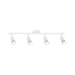 Das vierflammige Spotlight der Serie Carolina in der Farbe Weiß matt eröffnet vielfältige Einsatzmöglichkeiten und fügt sich mit seinem schlichten Design nahtlos in jede Wohnsituation ein. Das Leuchtmittel ist frei wählbar. Es lassen sich beliebige Reflektorlampen mit GU10-Sockel und einer Leistung von maximal 10 Watt einsetzen.