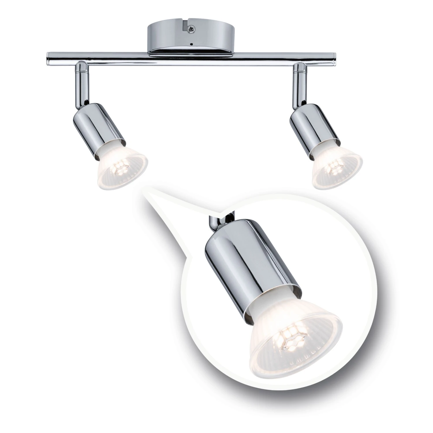 Das zweiflammige Spotlight der Serie Carolina in Chrom eröffnet vielfältige Einsatzmöglichkeiten und fügt sich mit seinem schlichten Design nahtlos in jede Wohnsituation ein. Das Leuchtmittel ist frei wählbar. Es lassen sich beliebige Reflektorlampen mit GU10-Sockel und einer Leistung von max. 2x10W einsetzen. Durch Spritzwasserschutz auch für den Einsatz im Badezimmer oder Feuchtraum geeignet.