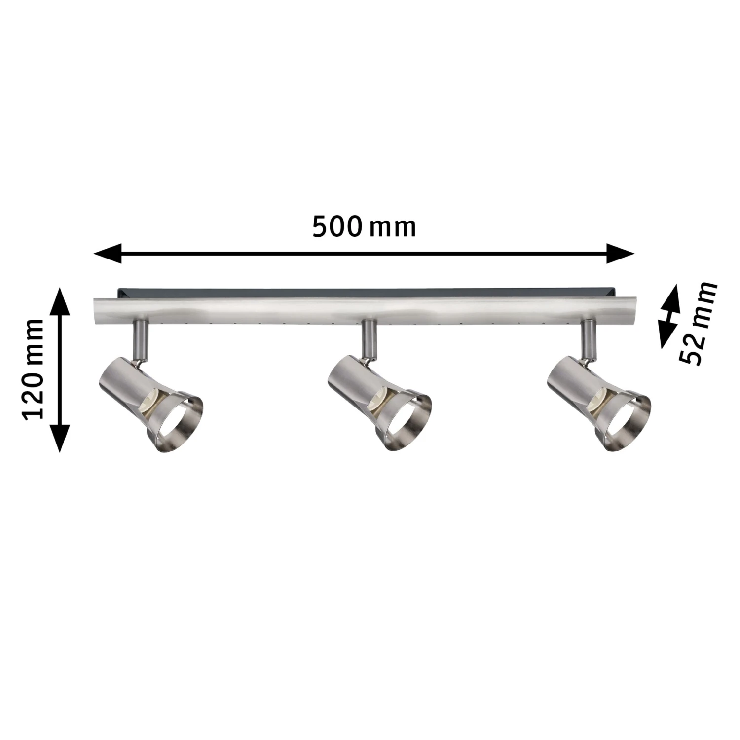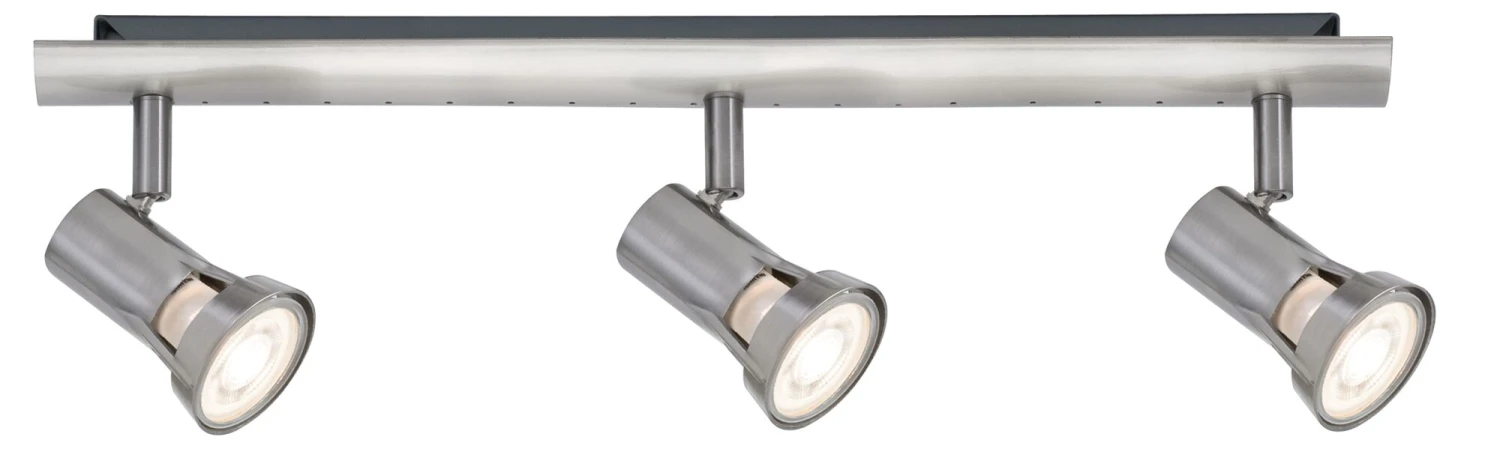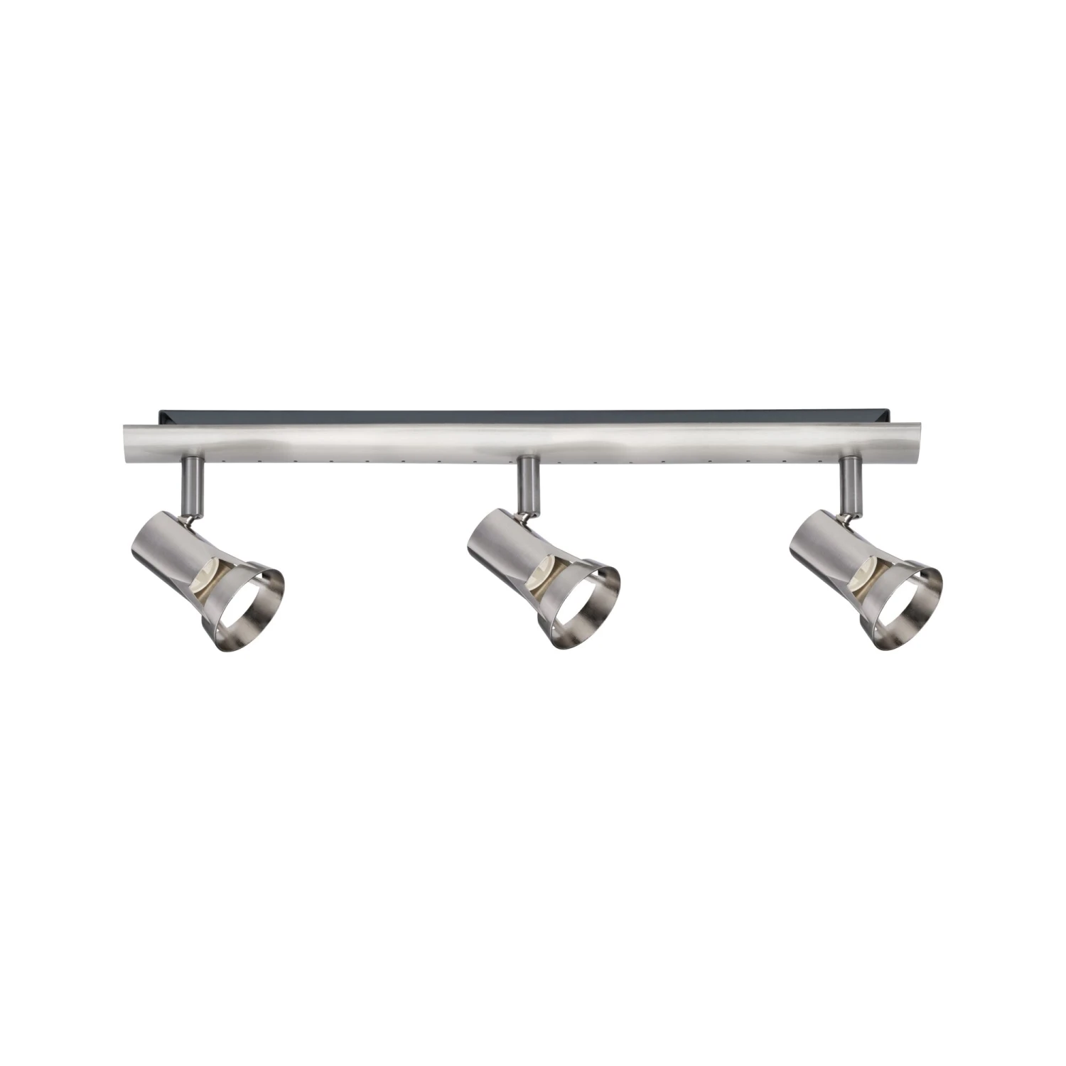 Die Spotlights der Serie Teja in Nickel satiniert eröffnen vielfältige Einsatzmöglichkeiten und fügen sich mit ihrem schlichten Design nahtlos in jede Wohnsituation ein. Das Leuchtmittel ist frei wählbar. Es lassen sich beliebige Reflektorlampen mit GU10-Sockel und einer Leistung von max. 3x10W einsetzen.