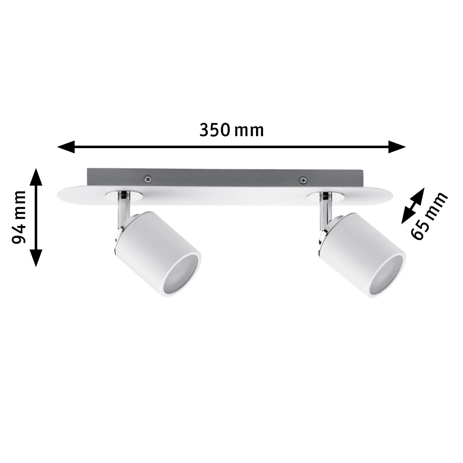Das zweiflammige Spotlight der Serie Tube in Weiß/Chrom eröffnet vielfältige Einsatzmöglichkeiten und fügt sich mit seinem schlichten Design nahtlos in jede Wohnsituation ein. Durch den Spritzwasserschutz ist selbst die Montage in Feuchträumen kein Problem. Das Leuchtmittel ist frei wählbar. Es lassen sich beliebige Reflektorlampen mit GU10-Sockel und einer Leistung von max. 2x10W einsetzen.