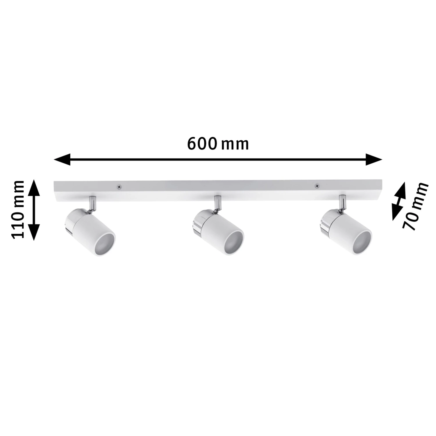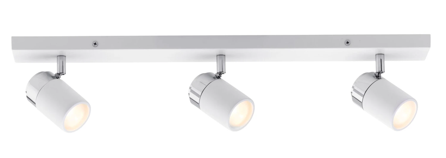 Das einflammige Spotlight der Serie Zyli in Weiß/Chrom eröffnet vielfältige Einsatzmöglichkeiten und fügt sich mit seinem schlichten Design nahtlos in jede Wohnsituation ein. Durch den Spritzwasserschutz ist selbst die Montage in Feuchträumen kein Problem. Das Leuchtmittel ist frei wählbar. Es lassen sich beliebige Reflektorlampen mit GU10-Sockel und einer Leistung von max. 3x10W einsetzen.