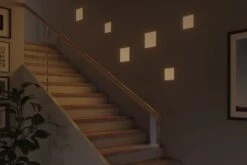 Das eckige Einbaupanel Areo mit einer Größe von 175×175 mm und einer Leistung von 13 Watt in Weiß sorgt für flächiges warmweißes Licht. Dank flexibler VariFit-Technik lassen sich die Klemmfedern für den Einbau stufenlos zwischen 50 und 140 mm einstellen. Damit kann das Panel sowohl in bereits vorhandene Bohrlöcher als auch in neue eingebaut werden. Mit der integrierten 3-step-dim Funktion, kann es durch mehrmaliges Betätigen eines handelsüblichen Lichtschalters in drei Stufen gedimmt werden. Die Memory-Funktion merkt sich die zuletzt verwendete Stufe bis zum nächsten Einschalten. Bei einem Bohrlochdurchmesser von 85 mm wird eine Hohlraumtiefe von 30 mm benötigt und bei einem Durchmesser von 68 mm eine Tiefe von 55 mm.