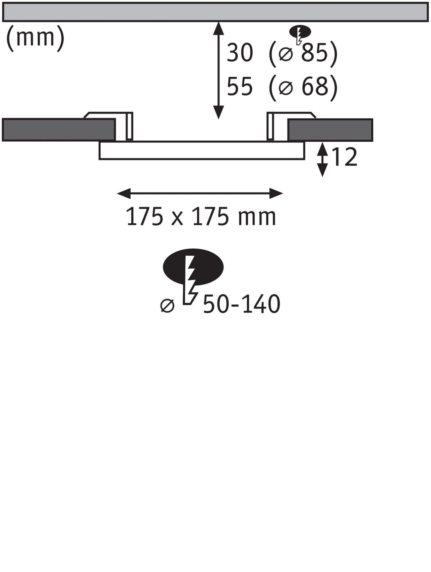 Das eckige Einbaupanel Areo mit einer Größe von 175x175mm und einer Leistung von 13 Watt in Weiß sorgt für flächiges warmweißes Licht. Dank flexibler VariFit-Technik lassen sich die Klemmfedern für den Einbau stufenlos zwischen 50 und 140 mm einstellen. Damit kann das Panel sowohl in bereits vorhandene Bohrlöcher als auch in neue eingebaut werden. Bei einem Bohrlochdurchmesser von 85 mm wird eine Hohlraumtiefe von 30 mm benötigt und bei einem Durchmesser von 68 mm eine Tiefe von 55 mm.