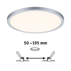 Das runde Einbaupanel Areo mit einem Durchmesser von 230mm und einer Leistung von 16 Watt in Chrom matt sorgt für flächiges, blendfreies Licht. Dank flexibler VariFit-Technik lassen sich die Klemmfedern für den Einbau stufenlos zwischen 50 und 195 mm einstellen. Damit kann das Panel sowohl in bereits vorhandene Bohrlöcher als auch in neue eingebaut werden. Über die Tunable White Funktion lässt sich die Lichtfarbe nach Bedarf einstellen: von tageslichtweißem Arbeitslicht bis hin zu warmweißer Entspannungsbeleuchtung. Die Lampe ist Zigbee 3.0 kompatibel. Zigbee 3.0 ist ein Funkübertragungsprotokoll, das Geräte verschiedener Hersteller miteinander vernetzt. Dadurch ist eine zentrale Steuerung der Beleuchtung möglich, in die beispielsweise auch Rollläden, Heizungen und Alarmanlagen integriert werden können. Bei einem Bohrlochdurchmesser von 85 mm wird eine Hohlraumtiefe von 30 mm benötigt und bei einem Durchmesser von 68 mm eine Tiefe von 55 mm.