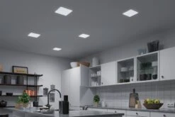 Flexibel einsetzbar wie noch nie! Das Einbaupanel Veluna VariFit in den Maßen 215x215mm besticht durch eine absolut randlose und homogene Lichtfläche. Mit einer superschlanken Aufbauhöhe von nur 10 mm verschmelzt das Panel quasi mit der Decke oder der Wand. Durch den Spritzwasserschutz ist es für den Einsatz im Badezimmer oder Feuchtraum geeignet. Die satinierte Oberfläche der Diffusorplatte sorgt für angenehm flächiges Raumlicht. Die Klemmfedern für den Einbau sind stufenlos auf jede übliche Einbaulochgröße zwischen 60 und 190 mm einstellbar, das erleichtert den Austausch alten Systeme enorm. Mit der Tunable White Weißlichtsteuerung lässt sich die Lichtfarbe der Leuchte individuell und stufenlos einstellen – von tageslichtweißem Arbeitslicht bis hin zu warmweißer Entspannungsbeleuchtung ist alles möglich. Die Leuchte ist Zigbee 3.0 kompatibel. Zigbee 3.0 ist ein Funkübertragungsprotokoll, das Geräte verschiedener Hersteller miteinander vernetzt.