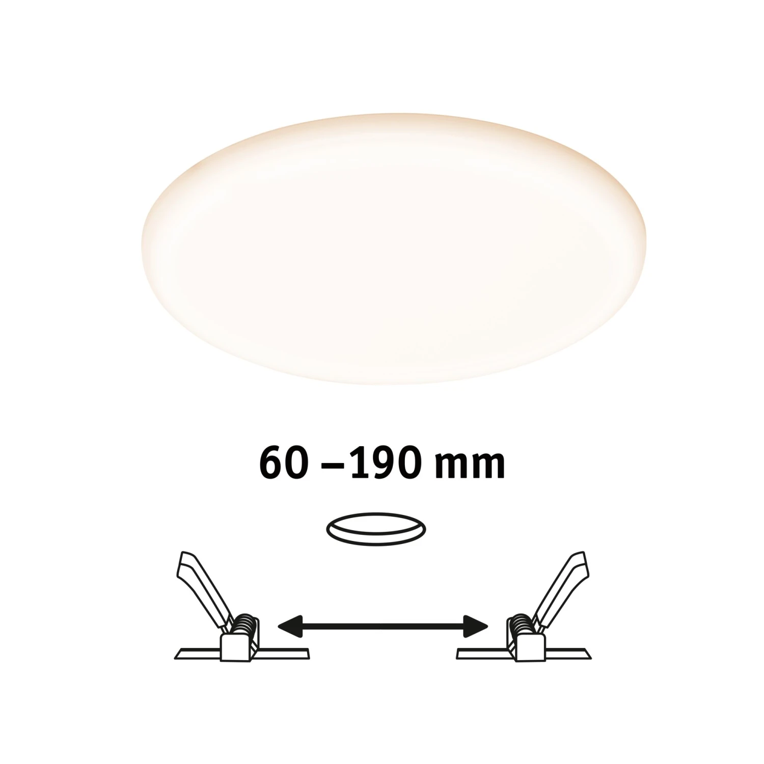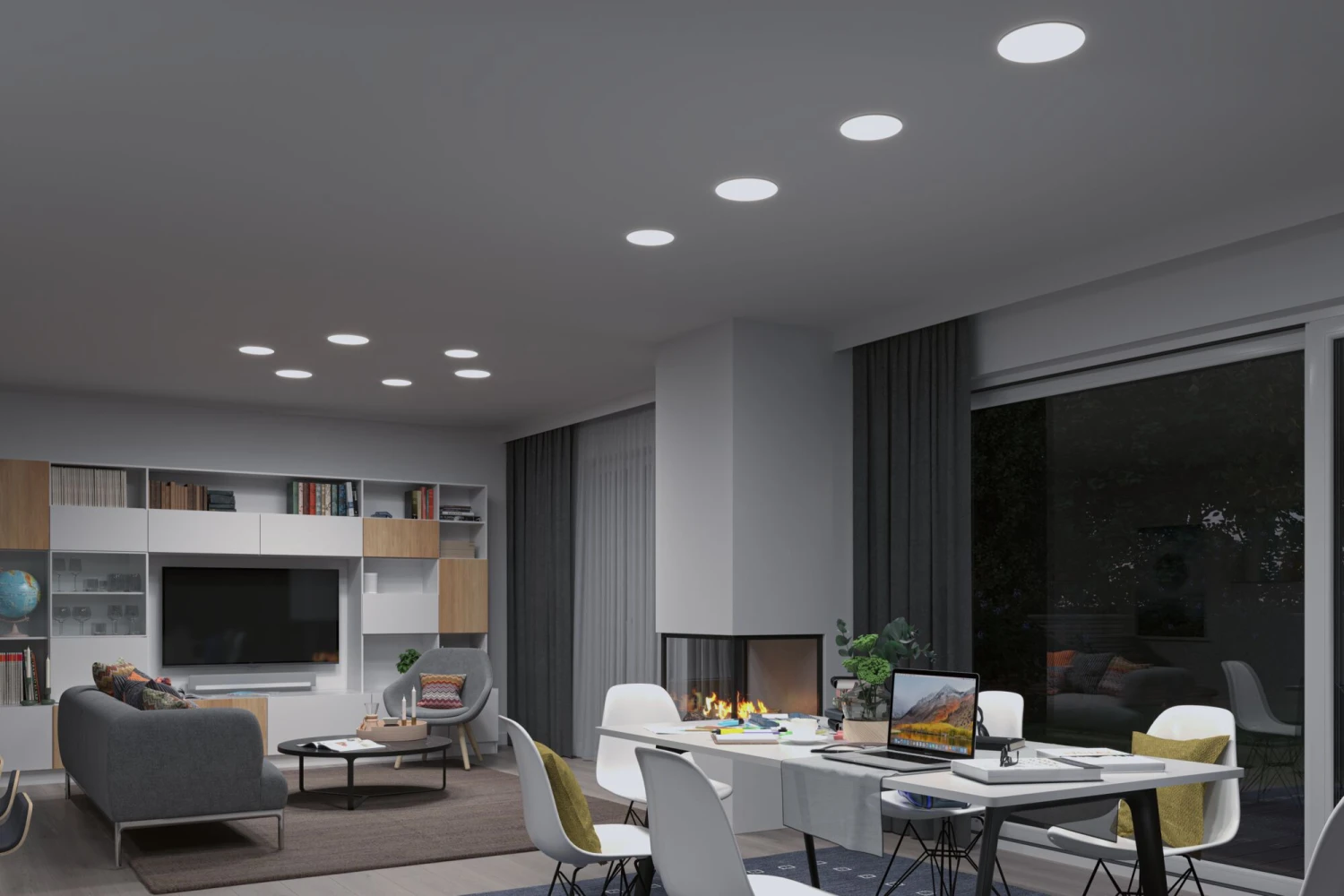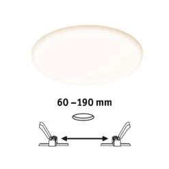 Flexibel einsetzbar wie noch nie! Das Einbaupanel Veluna VariFit mit dem Durchmesser von 215 mm besticht durch eine absolut randlose und homogene Lichtfläche. Mit einer superschlanken Aufbauhöhe von nur 10 mm verschmelzt das Panel quasi mit der Decke oder der Wand. Durch den Spritzwasserschutz ist es fĂĽr den Einsatz im Badezimmer oder Feuchtraum geeignet. Die satinierte Oberfläche der Diffusorplatte sorgt fĂĽr angenehm flächiges Raumlicht. Die Klemmfedern fĂĽr den Einbau sind stufenlos auf jede ĂĽbliche Einbaulochgröße zwischen 60 und 190 mm einstellbar, das erleichtert den Austausch alten Systeme enorm. Mit der Tunable White WeiĂźlichtsteuerung lässt sich die Lichtfarbe der Leuchte individuell und stufenlos einstellen – von tageslichtweiĂźem Arbeitslicht bis hin zu warmweiĂźer Entspannungsbeleuchtung ist alles möglich. Die Leuchte ist Zigbee 3.0 kompatibel. Zigbee 3.0 ist ein FunkĂĽbertragungsprotokoll, das Geräte verschiedener Hersteller miteinander vernetzt.
