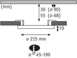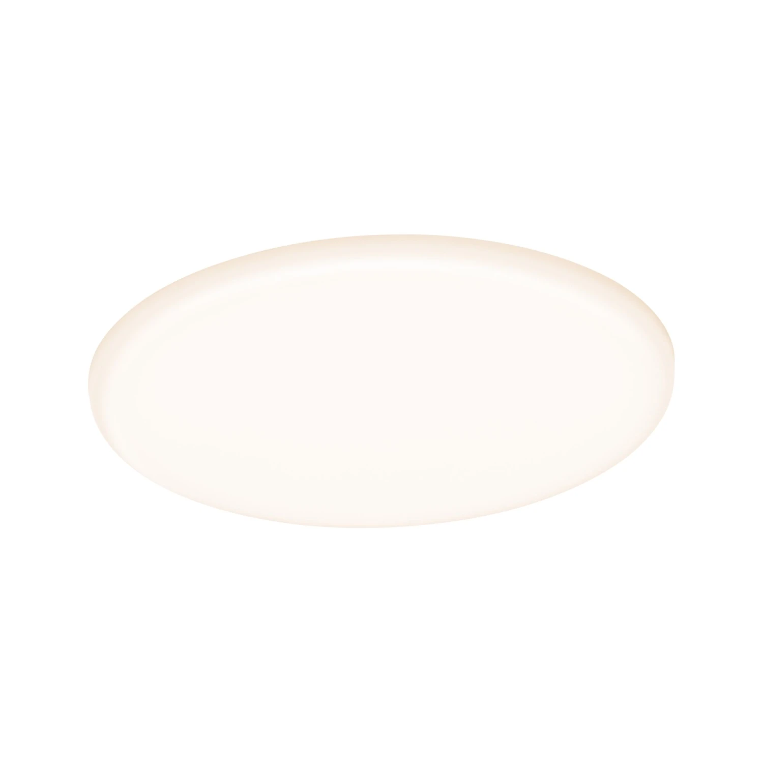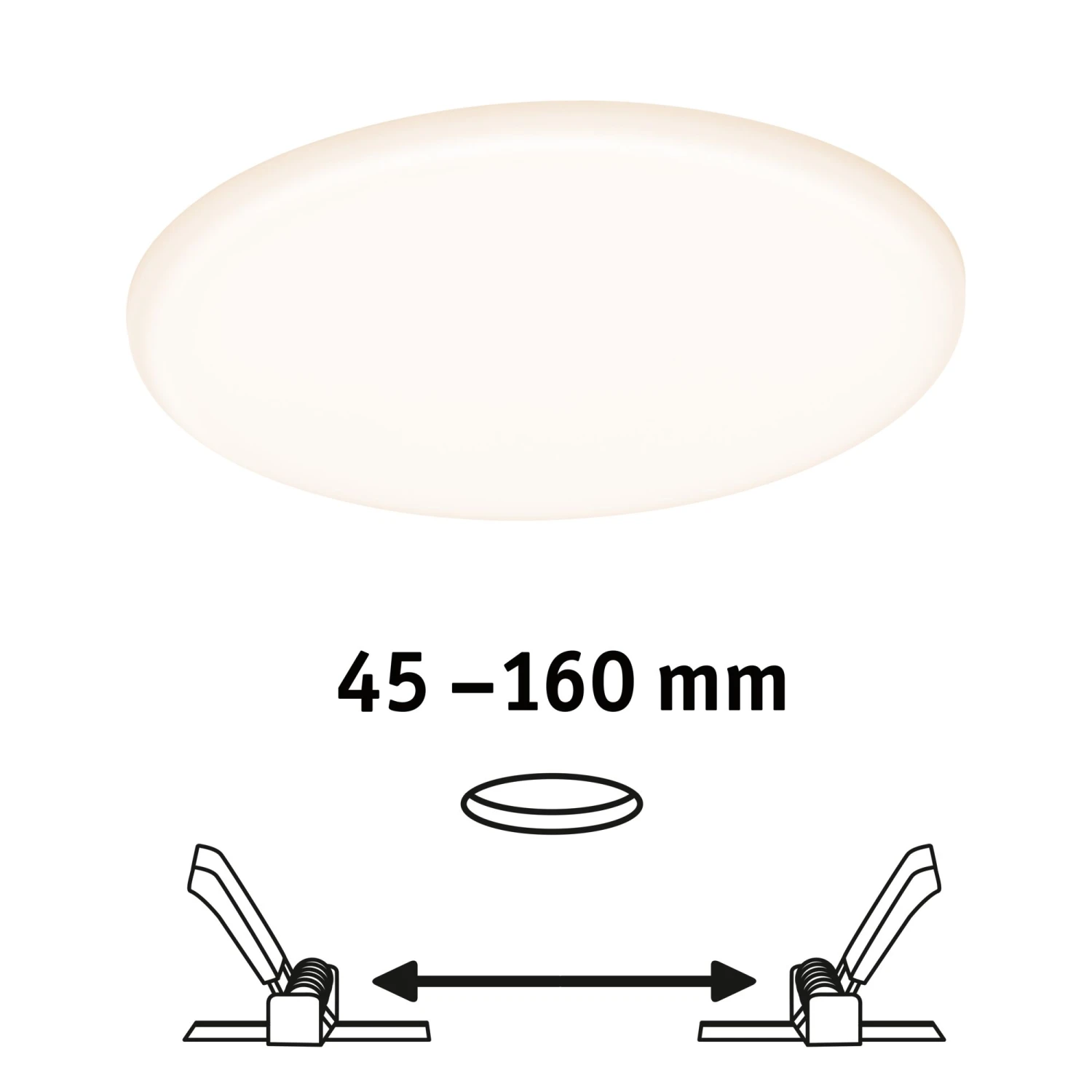 Flexibel einsetzbar wie noch nie! Das Einbaupanel Veluna VariFit mit dem Durchmesser von 215mm besticht durch eine absolut randlose und homogene Lichtfläche. Mit einer superschlanken Aufbauhöhe von nur 10 mm verschmelzt das Panel quasi mit der Decke oder der Wand. Durch Spritzwasserschutz für den Einsatz im Badezimmer oder Feuchtraum geeignet. Die satinierte Oberfläche der Diffusorplatte sorgt für angenehm flächiges Raumlicht. Die Klemmfedern für den Einbau sind stufenlos auf jede übliche Einbaulochgröße zwischen 45 und 190 mm einstellbar, das erleichtert den Austausch alten Systeme enorm. Das Panel ist mit der WhiteSwitch-Funktion ausgestattet, dadurch lässt sich die Farbtemperatur durch mehrfaches Betätigen des Wandschalters in drei Stufen einstellen lässt.