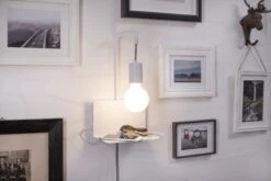 Die Wandlampe Calvani ist durch die integrierte Ablage multifunktional einsetzbar: Am Bett wird sie zur Leselampe und ersetzt den Nachttisch, im Eingangsbereich dient sie als Schlüsselablage und Flurbeleuchtung und auch in anderen Räumen wie Küche und Bad macht sie eine gute Figur. Die Montage erfolgt ganz einfach mit Stecker oder ist direkt am Stromauslass möglich. Dank USB-Ausgang lässt sich nebenbei auch das Smartphone oder Tablet darauf aufladen.
