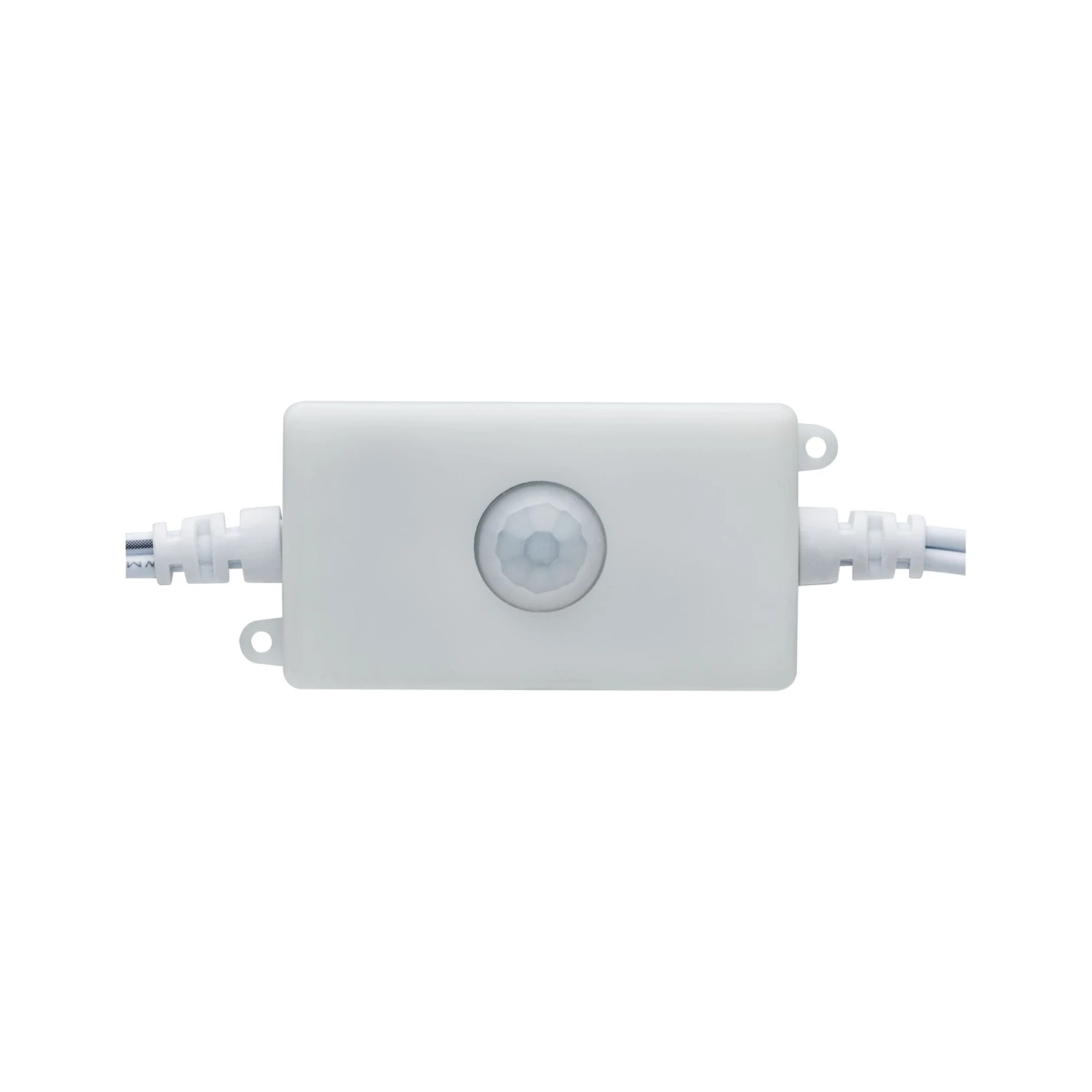 Mit dem YourLED IR-Sensor lässt sich eine YourLED-Installation berührungsfrei per Bewegungsmelder schalten. Dazu wird er zwischen Power Supply und LED-Strip montiert. Sowohl den Erfassungsbereich als auch die Dauer des Schaltzyklus zwischen 5 und 60 Sekunden kann individuell festlegt werden. Das Licht geht automatisch an, sobald sich dem Sensor genähert wird.
